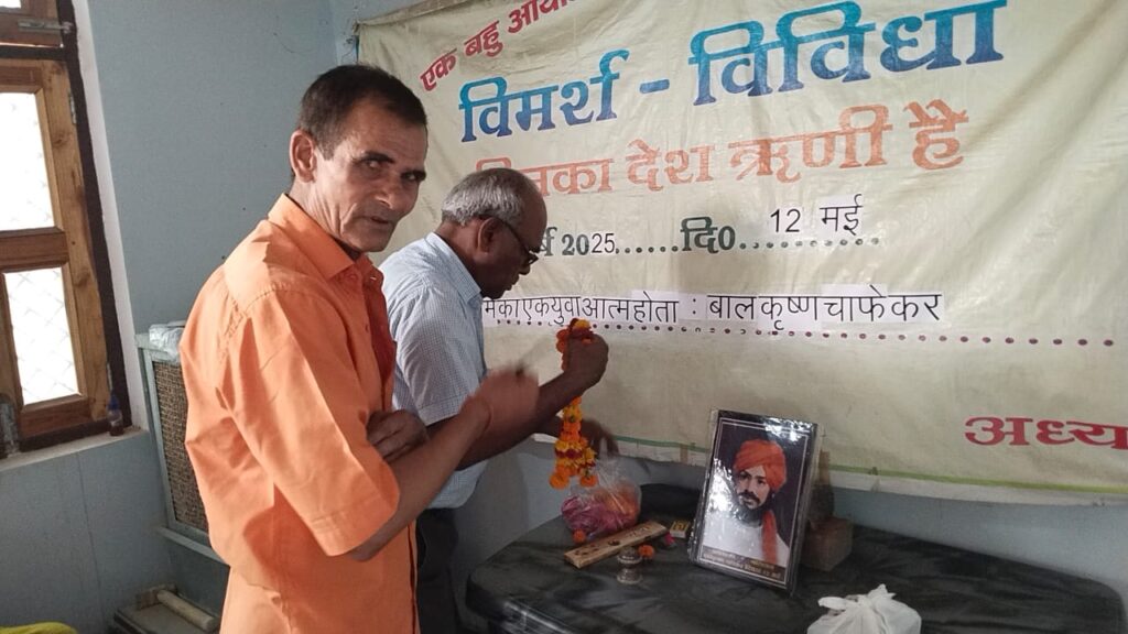 भरुआ सुमेरपुर। देशभक्तों की राष्ट्रवादी भूमिका के मद्देनजर वर्णिता संस्था के तत्वावधान में विमर्श विविधा के अन्तर्गत जिनका देश ऋणी है के तहत मातृभूमि के एक युवा आत्महोता बालकृष्ण चाफेकर की पुण्यतिथि पर संस्था के अध्यक्ष डा. भवानीदीन ने श्रद्धासुमन अर्पित करते हुए कहा कि बालकृष्ण चाफेकर सही मायने में एक समर्पित युवा बलिदानी थे। उनके योगदान को भुलाया नहीं जा सकता है। इनका महाराष्ट्र के पुणे के पास चिंचवड़ गांव में हरि विनायक चाफेकर तथा द्वारका चाफेकर के घर 1873 में जन्म हुआ था। ये तीन भाइयों में मंझले थे। प्रारम्भ से ही इन पर देशवादी विचारधारा थी। उस समय पुणे के आसपास प्लेग नामक महामारी फैली हुई थी। ब्रिटिश अधिकारी इस महामारी से जनरक्षा के प्रति बहुत ही उदासीन एवं बेपरवाह थे। फलतः तीनों भाईयों ने डब्ल्यू सी रैन्ड और आयर्स्ट नाम के गोरे अधिकारियों को मौत के घाट उतार दिये। तब ब्रिटिश सरकार ने भाइयों के साथ बालकृष्ण को गिरफ्तार कर लिया। इन्हें 12 मई 1899 को यरवदा जेल में फांसी दे दी गई। 24 वर्ष की उम्र में यह मां भारती के लिए शहीद हो गये। वर्णिता संस्था ने उनको नमन कर श्रृद्धांजलि अर्पित की। इस कार्यक्रम में अशोक अवस्थी, राधारमण गुप्ता, बाबूलाल, महावीर, रिचा, पंकज सिंह, भोलू सिंह, प्रेम, विकास, आशुतोष, प्रिन्स, राजकिशोर, राजन, देवराज, संतोष, अजय, दस्सी आदि शामिल रहे।