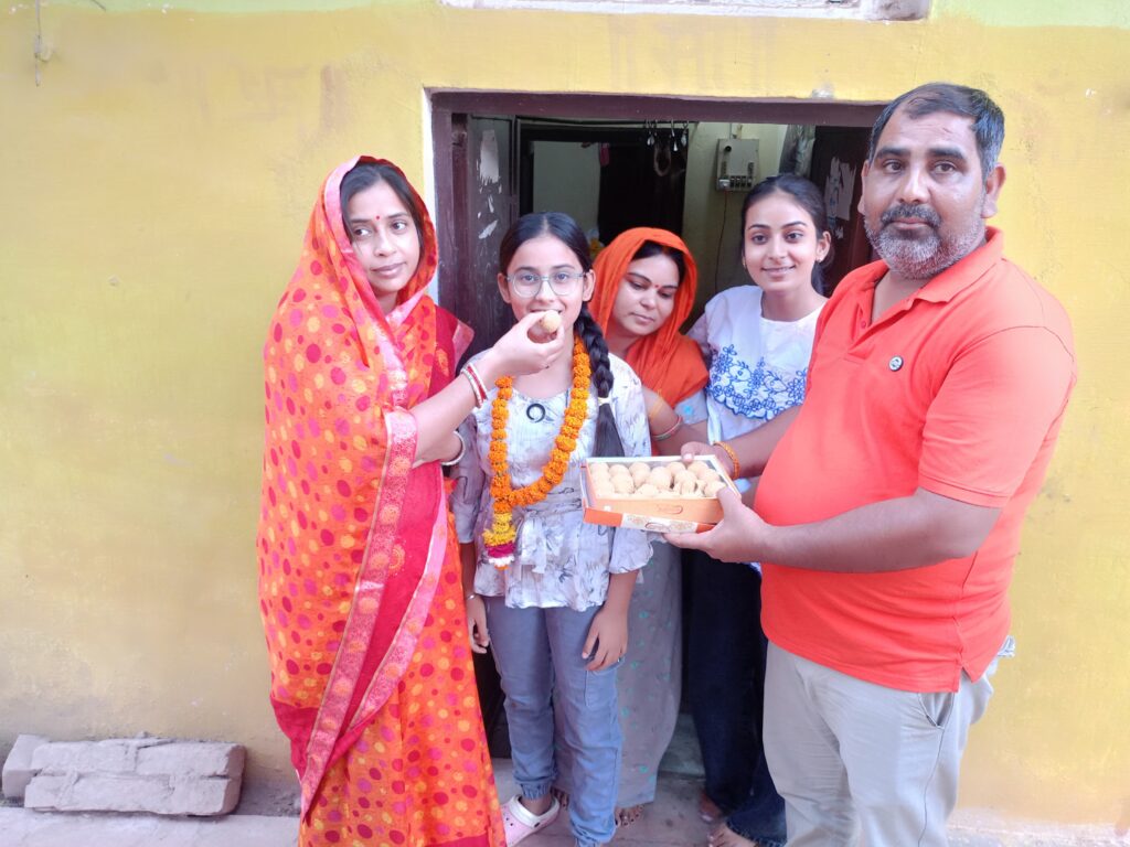भरुआ सुमेरपुर। कस्बे के बांकी रोड निवासी महर्षि विद्या मंदिर की छात्रा धृति शुक्ला ने हाईस्कूल में 91.8%अंक हासिल कर जिले में स्थान पाकर परिवार व कस्बे का नाम रोशन किया है।छात्रा की इस सफलता पर मां रुचि शुक्ला,पिता रविकांत शुक्ला एवं चाचा शशिकांत शुक्ला चाची प्रियंका शुक्ला ने मिठाई खिला कर खुशी जताई।छात्रा ने इस सफलता का श्रेय माता पिता के साथ शिक्षकों को दिया है।वह कंप्यूटर साइंस में इंजीनियर बन कर देश सेवा करना चाहती है।