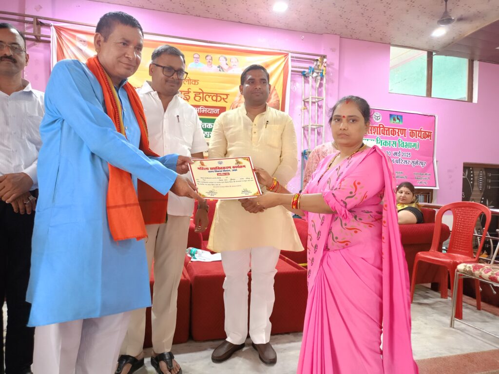 महिला सशक्तिकरण अभियान के तहत आयोजित गोष्ठी का शुभारंभ सदर विधायक डा. मनोज कुमार प्रजापति ने अहिल्याबाई होल्कर के चित्र पर माल्यार्पण करने के उपरांत गोष्ठी को संबोधित करते हुए कहा कि महिलाएं किसी भी क्षेत्र में कम नहीं है। फर्श से लेकर अर्श तक पहुंचकर देश का नाम रोशन कर रही हैं। ऑपरेशन सिंदूर में अहम भूमिका निभाने वाली सैन्य अधिकारियों की प्रशंसा पूरा देश कर रहा है। उन्होंने अहिल्याबाई होल्कर के बलिदान से महिलाओं को रूबरू कराया। गोष्ठी को ब्लॉक प्रमुख जयनरायन सिंह यादव, पूर्व जिलाध्यक्ष ब्रजकिशोर गुप्ता, उर्मिला सिंह आदि ने संबोधित किया। गोष्ठी की अध्यक्षता स्वयं सहायता समूह की दया तिवारी ने की। संचालन उत्तम सिंह ने किया। खंड विकास अधिकारी विपिन कुमार ने सभी के प्रति आभार जताया। इस मौके पर मीना यादव, उषा सिंह, गीता ओमर, बाल विकास परियोजना अधिकारी प्रीति भिलवारे, सुपरवाइजर कामनी पाल के अलावा आंगनबाड़ी कार्यकर्ती, सहायिका, आशा बहू आदि मौजूद रहीं।