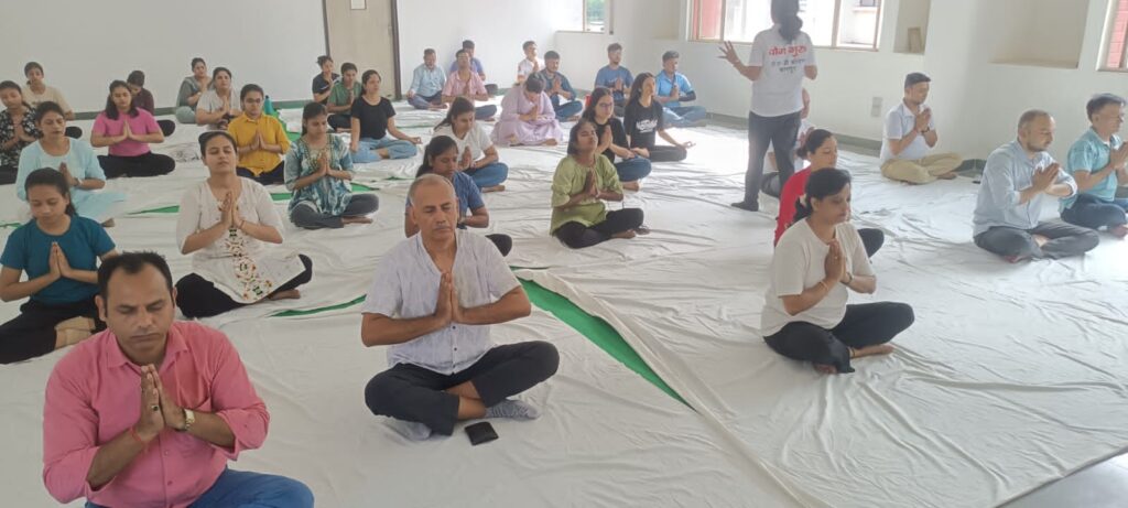 योग प्रशिक्षिका पूनम बाजपेई ने सभी को अनेक प्रकार के जटिल रोगों से बचाव हेतु अपनी नित्य जीवन शैली में योग को शामिल करने की सलाह दी प्रमुख योगासनों में वज्रासन, , शवासन, भ्रामरी और सूर्य नमस्कार इत्यादि आसनों एवं प्राणायामों का अभ्यास भी करवाया।
