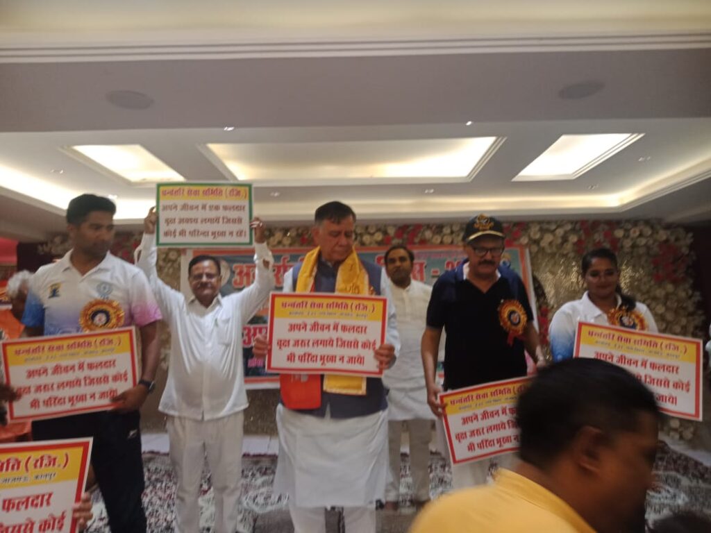 कई गणमान्य व्यक्ति उपस्थित रहे । सर्वप्रथम कार्यक्रम की शुरूआत भगवान धन्वंतरि के पूजन और माल्यार्पण करके प्रारंभ किया गया उसके उपरांत सतीश महाना अध्यक्ष विधानसभा उत्तर प्रदेश सरकार द्वारा दीप प्रज्वलित किया गया और साथ में धनवंतरी सेवा समिति के संरक्षक अरुण पुरी चैतन्य जी महाराज और श्री अभयानंद जी महाराज के साथ माननीय सतीश महाना ने दीप प्रज्वलित करके कार्यक्रम का शुभारंभ किया इस कार्यक्रम की अध्यक्षता सुखबीर सिंह मलिक धनवंतरी सेवा समिति के अध्यक्ष द्वारा किया गया उसके उपरांत सभी उपस्थित सम्मानित सदस्यों को पटका पहना करके उनका सम्मान किया गया इसमें प्रमुख रूप से रमेश गुलाटी अरुण भाटिया मुन्ना भैया डॉक्टर कप्तान सिंह डॉ राघवेंद्र प्रसाद सिंह श्री डॉक्टर निरंकार गोयल श्री डॉक्टर अशोक कुमार जायसवाल देवकीनंदन कलावड़िया की ओम श्री दुर्गा हाउसिंग सोसायटी के सचिव श्री रिपुसुदन निगम जी और अरुण पुरी चैतन्य जी महाराज और उपेंद्र पासवान जिला अध्यक्ष कानपुर देहात को सम्मानित किया गया इसके उपरांत समिति की तरफ से धनवंतरी सेवा समिति के एक यह जागरूकता के तहत की घर से मनी प्लांट हटाकर अपने घरों में पान का पौधा हम लगाए जिससे हमारे पूजन में भी काम आए और हमारे शरीर और स्वास्थ्य के लिए लाभदायक हो उसे तहत श्री सुखबीर सिंह मलिक अध्यक्ष एवं धनवंतरी सेवा समिति के पदाधिकारी अमित कुमार श्रीवास्तव अरुण कुमार शर्मा जी विक्रम सिंह श्री कपिल बाजपेई जी द्वारा श्री सतीश महाना जी को धनवंतरी सेवा समिति का पट्टा बनाकर सम्मानित किया गया एवं एक पान का पौधा उनको सम्मानपूर्वक प्रदान किया गया इसके बाद डॉक्टर विपिन पथिक जी ने योग के बारे में बताया और उनके द्वारा उनकी एक सहकर्मी द्वारा योग करके लोगों को दिखाया गया कि योग से क्या लाभ है और क्या हानि है फिर डॉक्टर रामकिशोर जी द्वारा योग के बारे में और उसका वैज्ञानिक महत्व के बारे में सभी लोगों को अवगत कराया फिर इसके उपरांत डॉक्टर नीरज तिवारी जी ने शरीर में नाभि संतुलन एवं पेट उखड़ जाता है उसके बारे में कैसे योग के माध्यम से ठीक करेंगे उसके बारे में जानकारी दी इसके उपरांत माननीय सतीश महानजी विधानसभा अध्यक्ष के माध्यम से सभी लोगों को आशीर्वाद वचन प्रदान किया तथा उन्होंने योग के महत्व के बारे में बताया कि कैसे व्यक्ति योग के माध्यम से निरोगी काया प्राप्त करता है और आजीवन उसको उसे योग का पूर्ण लाभ मिलता है इसके बारे में विस्तृत रूप से जानकारी प्रदान की गई सभी योग के सम्मान पूरक कार्यक्रम के बाद कार्यक्रम की अध्यक्षता कर रहे सुखबीर सिंह मलिक जी द्वारा धन्यवाद प्रस्ताव रख किया गया और सभी को उपस्थित पदाधिकारी सदस्यों एवं सम्मानित प्रमाण व्यक्तियों 