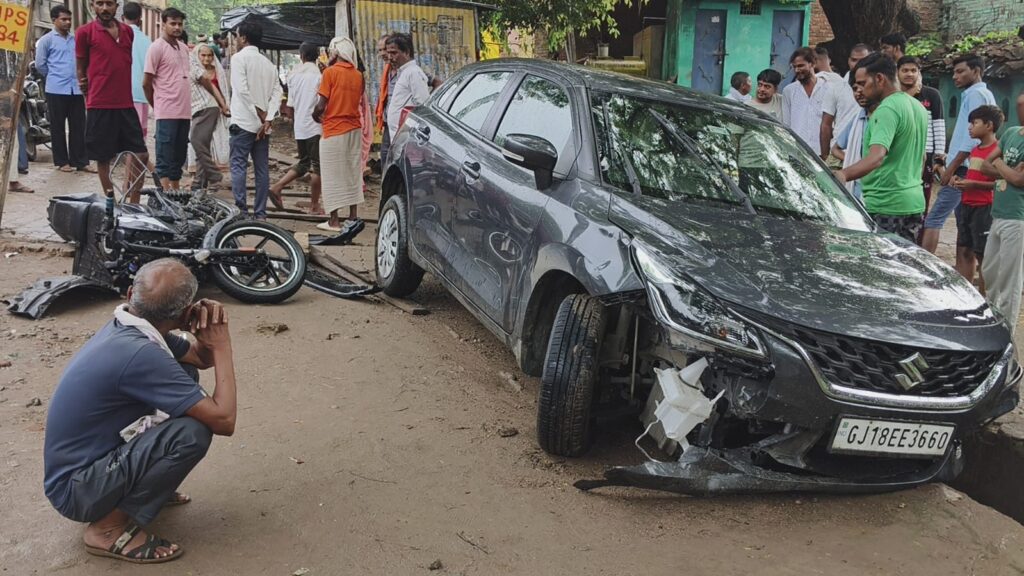 भरुआ सुमेरपुर। कस्बे के बांदा मार्ग में धर्मेश्वर बाबा मुहाल में तेज रफ्तार कार ने बाइक सवारों को टक्कर मारते हुए। सड़क किनारे गड्ढे में जाकर फस गई। इस घटना बाइक सवार गंभीर रूप से घायल हो गए।