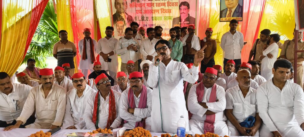 भरुआ सुमेरपुर। कस्बे के दुग्ध डेयरी मार्ग में हरिप्रिया गेस्ट हाउस में सपा द्वारा आयोजित संविधान मान स्तंभ एवं आरक्षण दिवस पीडीए प्रकाश स्तंभ को गोष्ठी में सपा नेताओं ने केंद्र में प्रदेश सरकार पर जमकर हमला बोला और कहा कि दोनों सरकारें संविधान एवं आरक्षण विरोधी हैं।