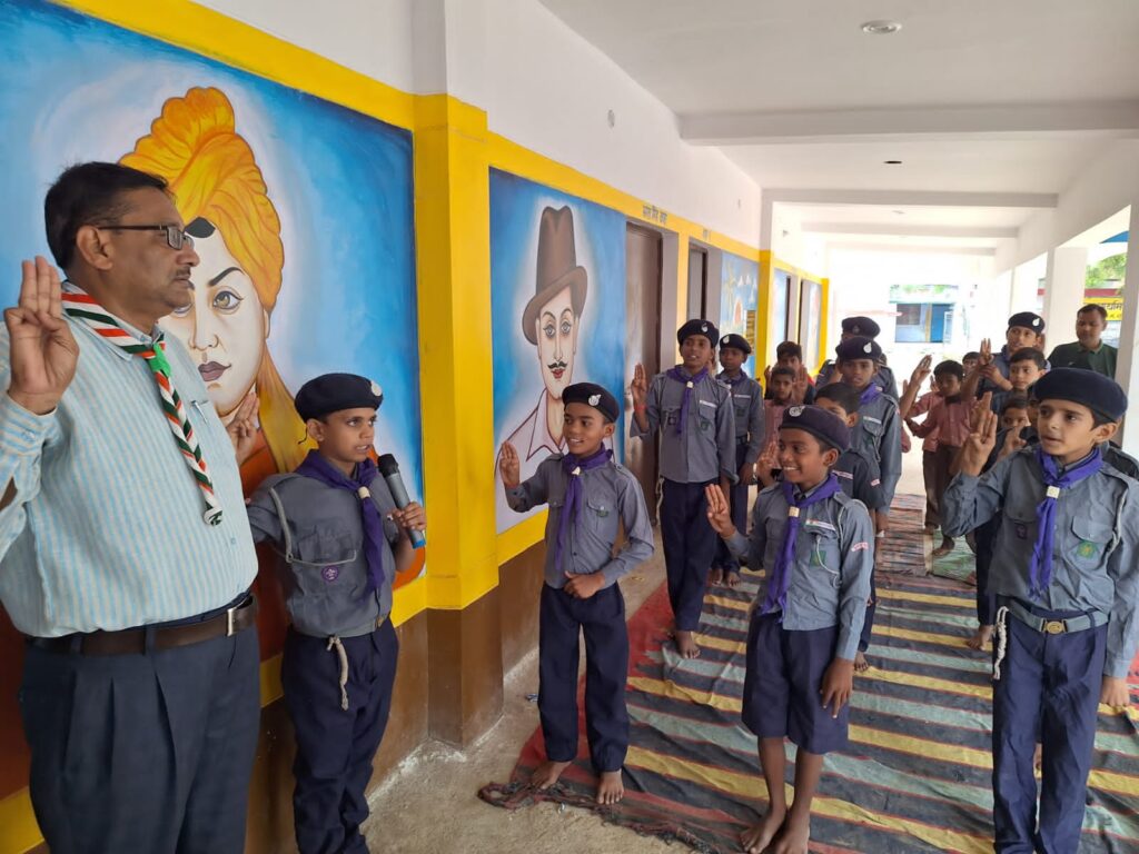 विद्यालय के स्काउट गाइड बच्चें पूर्ण गणवेश में विद्यालय के स्काउट मास्टर एवं गाइड कैप्टन के साथ उपस्थित रहे। जिला स्काउट मास्टर अकबर अली के निर्देशन में स्काउट दल द्वारा ध्वज शिष्टाचार, सर्वधर्म प्रार्थना एवं अन्य गतिविधियां सम्पन्न हुई।विद्यालय के प्रधानाध्यापक काजी नईमउद्दीन व स्काउट दल प्रभारी गजेन्द्र सिंह द्वारा मार्च पास्ट, सलामी,सैल्यूट व बिना बर्तन के भोजन गतिविधियों को कराया गया । स्काउट गाइड बच्चों ने अपने जिला स्काउट मास्टर, स्काउट मास्टर एवं अन्य अतिथियों को स्कार्फ पहनाकर उनका सम्मान किया।