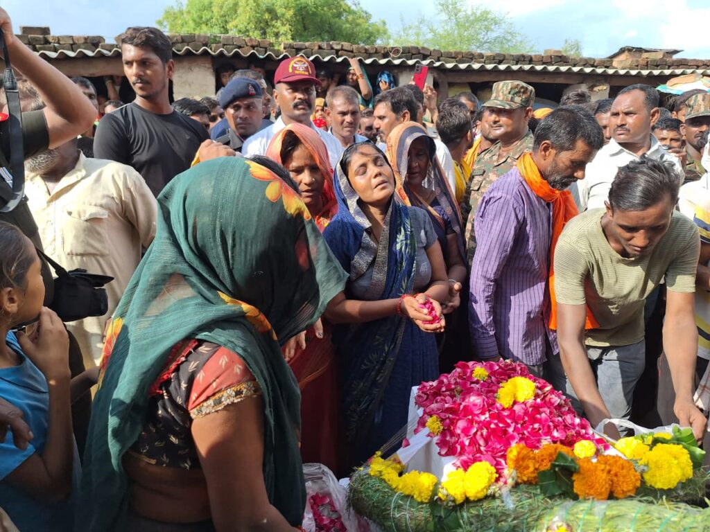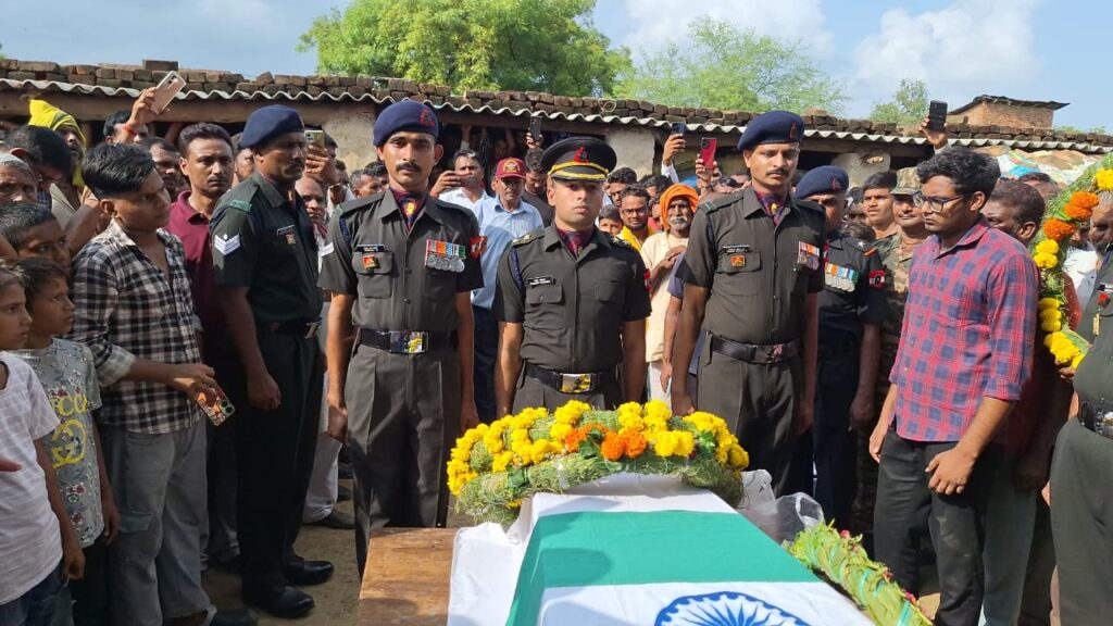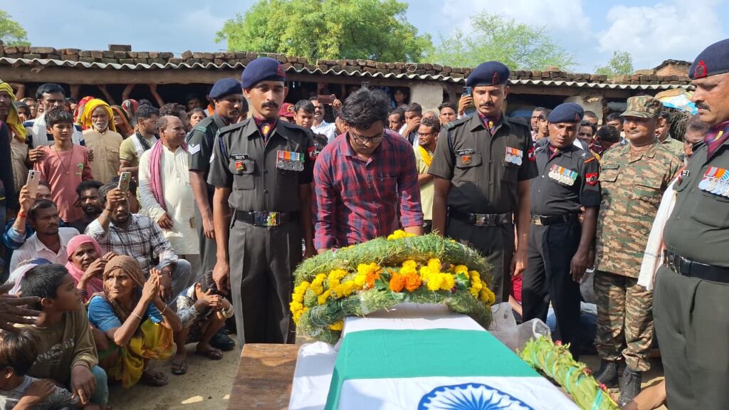 भरुआ सुमेरपुर। लुधियाना के नाइन एयरफोर्स स्टेशन में परेड के दौरान चार अगस्त को सुबह अटैक पड़ने से अस्पताल ले जाते समय हवलदार राजेश कुमार यादव की मौत हो गई। शव के गांव आने पर झांसी 20- 1 यूनिट के लेफ्टिनेंट कर्नल प्रशांत भारद्वाज के नेतृत्व में आई सेना की टुकड़ी ने गार्ड ऑफ ऑनर देकर सलामी दी। बाद में गांव किनारे बने मोक्ष धाम में राजकीय सम्मान के साथ शहीद का अंतिम संस्कार किया गया। इस मौके पर सदर विधायक सहित सैकड़ो की तादाद में गणमान्य लोगों के अलावा ग्रामीण मौजूद रहे।