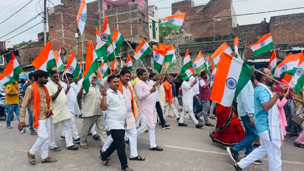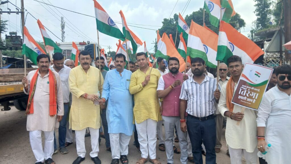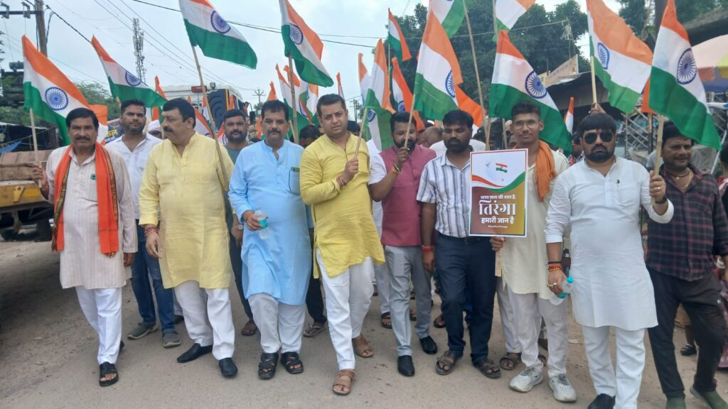 तिरंगा यात्रा के संयोजक शरद चंदेल ने बताया कि आपरेशन सिंदूर की सफलता के बाद सैनिकों के सम्मान में बीजेपी तिरंगा यात्रा का आयोजन कर रही है। इस तिरंगा यात्रा का उद्देश्य शहीदो के साथ सेना के पराक्रम का सम्मान करना है। तिरंगा यात्रा कस्बे के ठडेश्वरी आश्रम से शुरू होकर बांकी मार्ग स्थित शहीद स्मारक में जाकर संपन्न हुई। यहां पर शहीद सैनिक रमेश विश्वकर्मा को पुष्पांजलि देखकर नमन किया गया। तिरंगा यात्रा में पूर्व विधायक युवराज सिंह, ब्लाक प्रमुख जयनारायण सिंह यादव, नगर पंचायत अध्यक्ष धीरेन्द्र शिवहरे, व्यापार मंडल अध्यक्ष महेश गुप्ता दीपू, मंडल अध्यक्ष रणवीर सिंह, योगेंद्र दीक्षित, अरिमर्दन सिंह, पुष्पराज सोनी, रोहित शिवहरे, मीना यादव, उषा सिंह, जगत राज प्रजापति, सुनीता शिवहरे, राखी शिवहरे, अरविंद श्रीवास्तव, भार्गव मिश्रा, पूर्व प्रधान दिनेश सिं,ह कृष्ण कुमार त्रिवेदी, श्याम धुरिया, उमेश सिंह आदि मौजूद रहे।