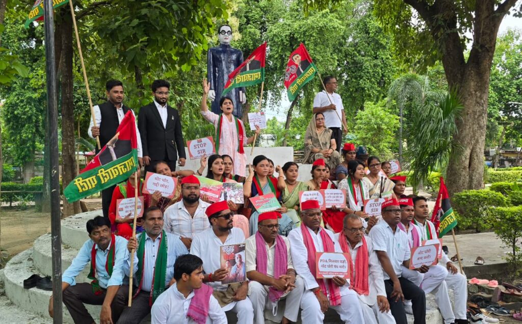 हमीरपुर। मतदाता सूची की शुद्धता को लेकर समाजवादी पार्टी महिला सभा की जिलाध्यक्ष नीलम यादव के नेतृत्व में मुख्य चुनाव आयुक्त भारत निर्वाचन आयोग को संबोधित ज्ञापन उपजिलाधिकारी के माध्यम से सौंपा गया।नीलम यादव ने कहा कि समाजवादी पार्टी द्वारा उत्तर प्रदेश की विधानसभाओं में मतदाता सूची से पिछड़ी जातियों यादव, मुस्लिम, मौर्या, प्रजापति, बघेल आदि के नाम बड़ी संख्या में काटे जाने की लिखित शिकायत की गई थी। सपा द्वारा शपथ पत्र सहित मतदाताओं के 18 हजार वोट काटे जाने की लिखित शिकायत करने के बाद भी अभी तक कोई कार्यवाही नहीं हुई। सपा समर्थक मतदाताओं का नाम मतदाता सूची से काटे जाने से मतदाता सूची की शुद्धता पर सवाल खड़ा हो रहा है। ज्ञापन देकर मांग की गयी है कि मतदाताओं के काटे गए नाम की शपथ पत्र सहित की गई शिकायत को संज्ञान में लेकर दोषी अधिकारियों को तत्काल दंडित किया जाए जिससे भविष्य में किसी भी वैध मतदाता का नाम अवैध ढंग से हटाया न जा सके। इस मौके पर सपा के जिलाध्यक्ष इदरीश खान, मुन्नीलाल निषाद प्रदेश सचिव, रामप्रकाश प्रजापति पूर्व प्रत्याशी सदर विधानसभा, राजपूत चंद्रवती वर्मा पूर्व प्रत्याशी विधानसभा राठ, युगांक मिश्रा, लाला प्रधान, राघवेन्द्र यादव, सैयद उमर, अनार सिंह यादव, मानसिंह यादव जिलाध्यक्ष युवजन सभा, मोहम्मद सलीम, गोकुल राजपूत, सूर्यप्रताप यादव, अनीता प्रजापति, छाया प्रजापति, रानी कुशवाहा, रूबी राजपूत, नीतू राजपूत, कविता वर्मा, प्रीति राजपूत, सोनम राजपूत, कीर्ति यादव, कमला, जानकी कुशवाहा, रीना कुशवाहा, मुलिया वर्मा, वेद प्रकाश वर्मा, अवधेश प्रताप, मुसाहिब बेग, रामखिलावन प्रजापति, शशिकांत राजपूत, मुहम्मद जुनैद, मुलायम सिंह लोधी, कामता राजपूत, ब्रजभूषण यादव, सूर्या यादव, अनुराग यादव सहित अनेक सपा कार्यकर्ता उपस्थित रहे।