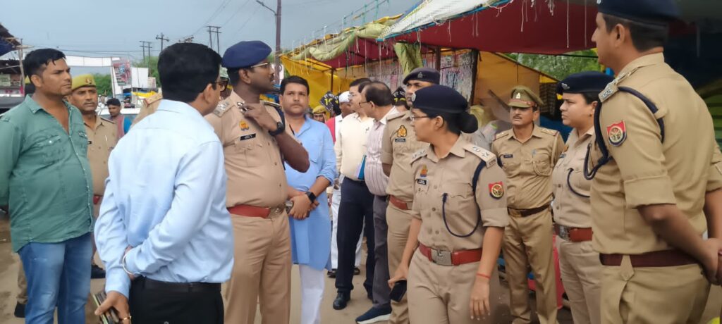 भरुआ सुमेरपुर। तीजा मेला के मद्देनजर पुलिस उपमहानिरीक्षक चित्रकूट धाम बांदा राजेश एस ने शाम को पशु बाजार मेला मैदान एवं हरचंदन तालाब, छोटी बाजार का भ्रमण करके मेला एवं शोभायात्रा की तैयारियों का जायजा लिया। वहीं स्टेशन मार्ग में गीता वाटिका में जिलाधिकारी एवं पुलिस अधीक्षक ने मीटिंग करके सुरक्षा कर्मियों के साथ मेले में तैनात अधिकारियों को मेले की सुरक्षा,यातायात व्यवस्था आदि के निर्देश दिए। कहा कि मेले को।सकुशल संपन्न कराने में किसी तरह की कमी नहीं होनी चाहिए। मंगलवार से शुरू हो रहे हैं तीन दिवसीय ऐतिहासिक तीजा मेला को संपन्न कराने के लिए अधिकारियों ने कमर कस ली है। सोमवार को शाम चित्रकूटधाम मंडल के डीआईजी राजेश एस ने कस्बे का भ्रमण करके पशु बाजार मेला मैदान,छोटी बाजार, नागनाथन के लिए सजकर तैयार हरचंदन तालाब का जायजा लिया। उन्होंने आयोजकों से बातचीत करके जानकारियां ली। और मातहतों को आवश्यक दिशा निर्देश दिए। निरीक्षण के दौरान जिलाधिकारी घनश्याम मीणा, पुलिस अधीक्षक डॉ.दीक्षा शर्मा, एएसपी मनोज कुमार गुप्ता, एडीएम वित्त एवं राजस्व विजय शंकर तिवारी,एडीएम न्यायिक रिजवाना शाहिद,सीओ सदर राजेश कमल,बीडीओ विपिन कुमार,ईओ दिनेश चंद्र आर्य,थानाध्यक्ष अनूप सिंह,मेला कोतवाल रामकुमार यादव,मेला प्रबंधक सौमित्र सिंह, श्रीकृष्ण लीला तीजा महोत्सव कमेटी के अध्यक्ष जयप्रकाश दीक्षित, कुंजबिहारी पांडे,संजीव पांडे आदि मौजूद रहे।