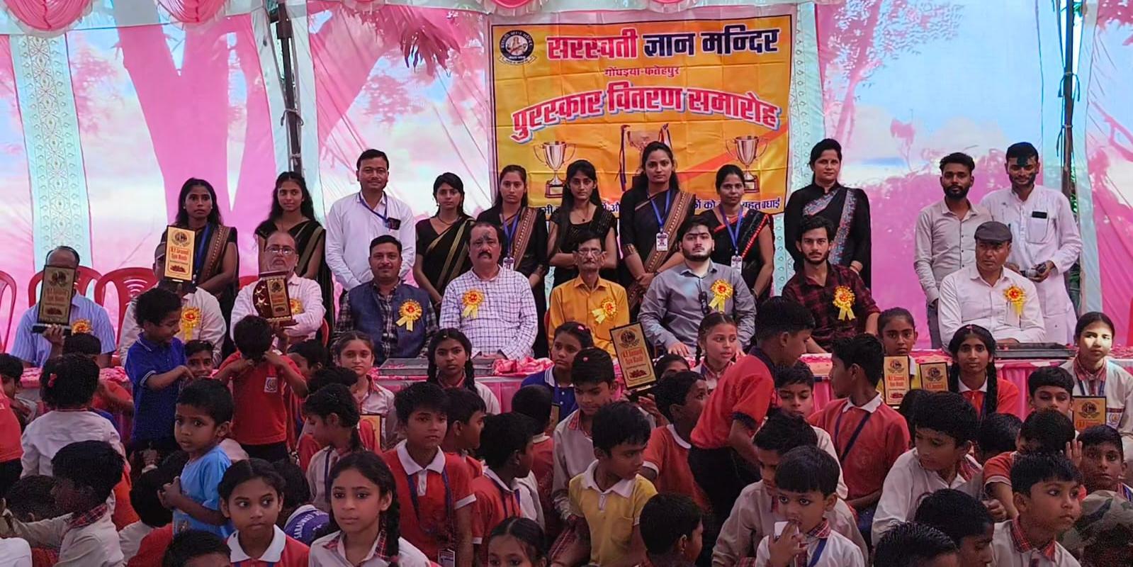 फतेहपुर। बिंदकी तहसील क्षेत्र के गोंधइया गांव स्थित सरस्वती ज्ञान मंदिर विद्यालय में मेधावी छात्र-छात्राओं के सम्मान में भव्य पुरस्कार वितरण समारोह का आयोजन किया गया। कार्यक्रम में जिले के विभिन्न क्षेत्रों से आए गणमान्य व्यक्तियों, शिक्षाविदों, पत्रकारों एवं जनप्रतिनिधियों ने प्रतिभाग किया और शिक्षा के महत्व पर अपने विचार रखे।