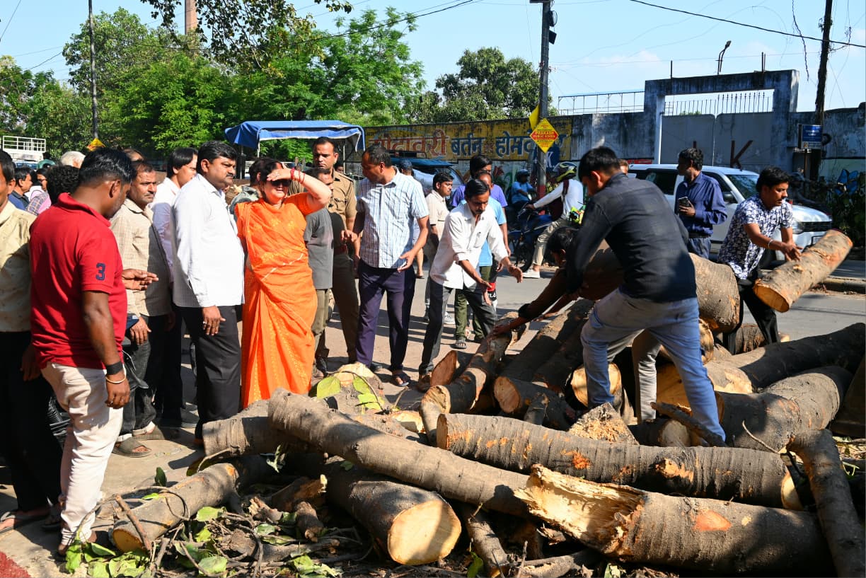 कानपुर।महापौर श्रीमती प्रमिला पांडेय ने पार्षद नीरज कुरील, अधिशाषी अभियन्ता उद्यान के साथ नवीन नगर काकादेव पेड़ गिरने से क्षतिग्रस्त मकान एवं अन्य स्थानों का निरीक्षण भी किया । इसके पूर्व महापौर कानपुर महानगर में दिनांक 04.04.2026 से शहर में चक्रवात के प्रकोप के कारण हो रही बारिश, आंधी के कारण उखड़े, गिरे पेड़ों को हटाये जाने की कार्यवाही के सम्बन्ध में विस्तार से पूछने पर अधिशाषी अभियन्ता उद्यान दिवाकर भास्कर ने महापौर को अवगत कराया कि आंधी में पूरे शहर में पेड़ उखड़ने, गिरने की सूचना प्राप्त हुई थी, जिसके लिये नगर निगम स्तर पर उपलब्ध कर्मियों के साथ निजी स्तर पर कुल 22 टीमे लगायी गयी है, जो पेड़ो को हटाकर रास्ते को अवगमन से बाधा मुक्त किया गया है। शहर के चारो ओर रामा देवी से कल्याणपुर एवं फूलबाग से बर्रा बाइपास तक मुख्य मार्गाे के अवरोध को हटाया जा रहा है। महापौर ने निर्देशित कियाकि इस कार्य में आवश्यकतानुसार कर्मियों को लगाकर रास्ता साफ कराया जाये। सभी पेड़ो की लकड़ियों को नगर निगम मुख्यालय में जमा किया जाये एवं जहॉ से जो पेड़ उखड़ा है, वहॉ पर वहीं पौधा सुरक्षित करते हुए लगाया जाये। ।