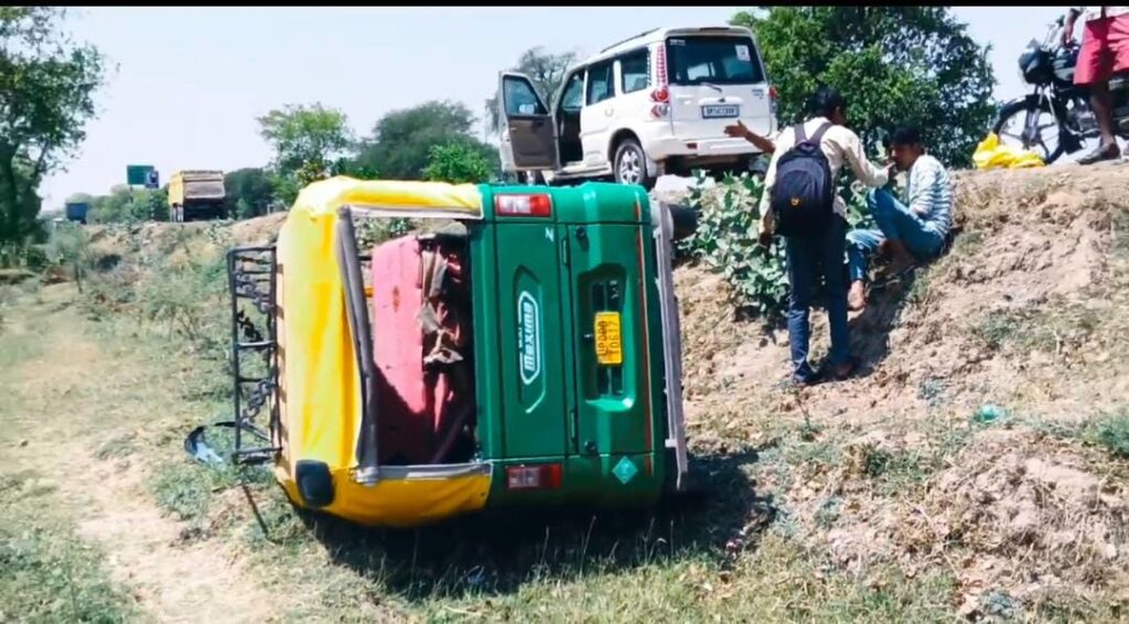 बुधवार को दोपहर करीब 12:00 बजे एक ऑटो कस्बे से सवारियां बैठा कर मौदहा जा रहा था। हाईवे पर प्रेम नगर के समीप यह अनियंत्रित होकर सड़क किनारे पलट गया। ऑटो में सात सवारियां बैठी थी। घटना की सूचना पाकर पहुंची पुलिस ने घायल प्रज्ञा पुत्री रमन गोपाल निवासी सुमेरपुर को अस्पताल पहुंचाया। अन्य सवारियों को मामूली चोटें होने पर दूसरे वाहनों से गंतव्य के लिए रवाना किया गया। बता दे की ऑटो में तीन सवारियां बैठाने का परमिट होता है। लेकिन यह क्षमता से अधिक सवारियां भरकर हाईवे सहित सभी मार्गों पर फर्राटा भरते हैं। पुलिस एवं यातायात विभाग कार्यवाही के नाम पर फिसड्डी साबित हो रही है।